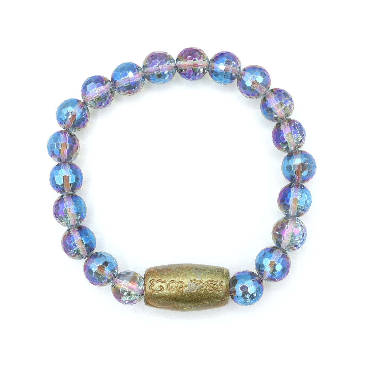 กำไล หินเรนโบว์ควอตซ์-ฟ้าเหลี่ยม