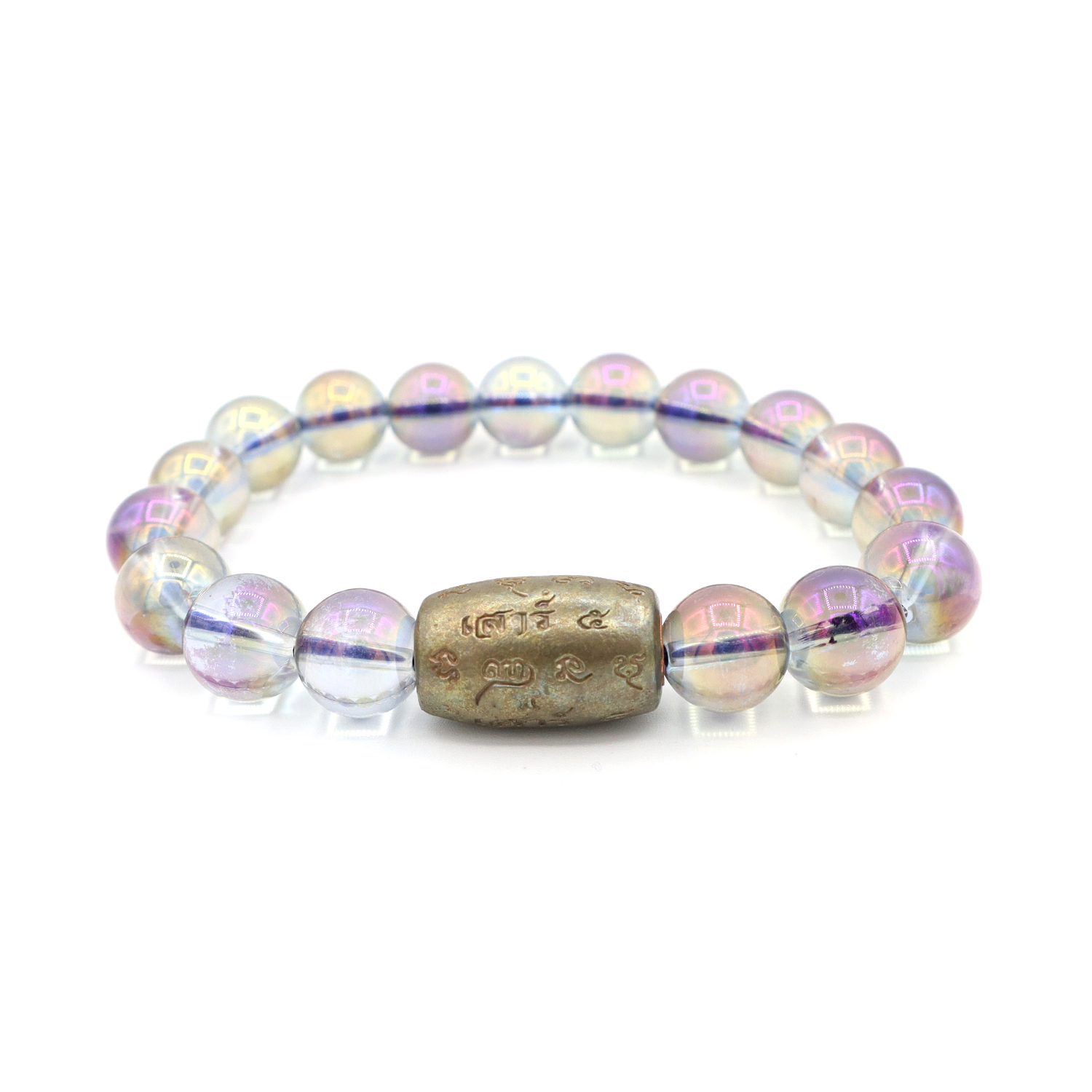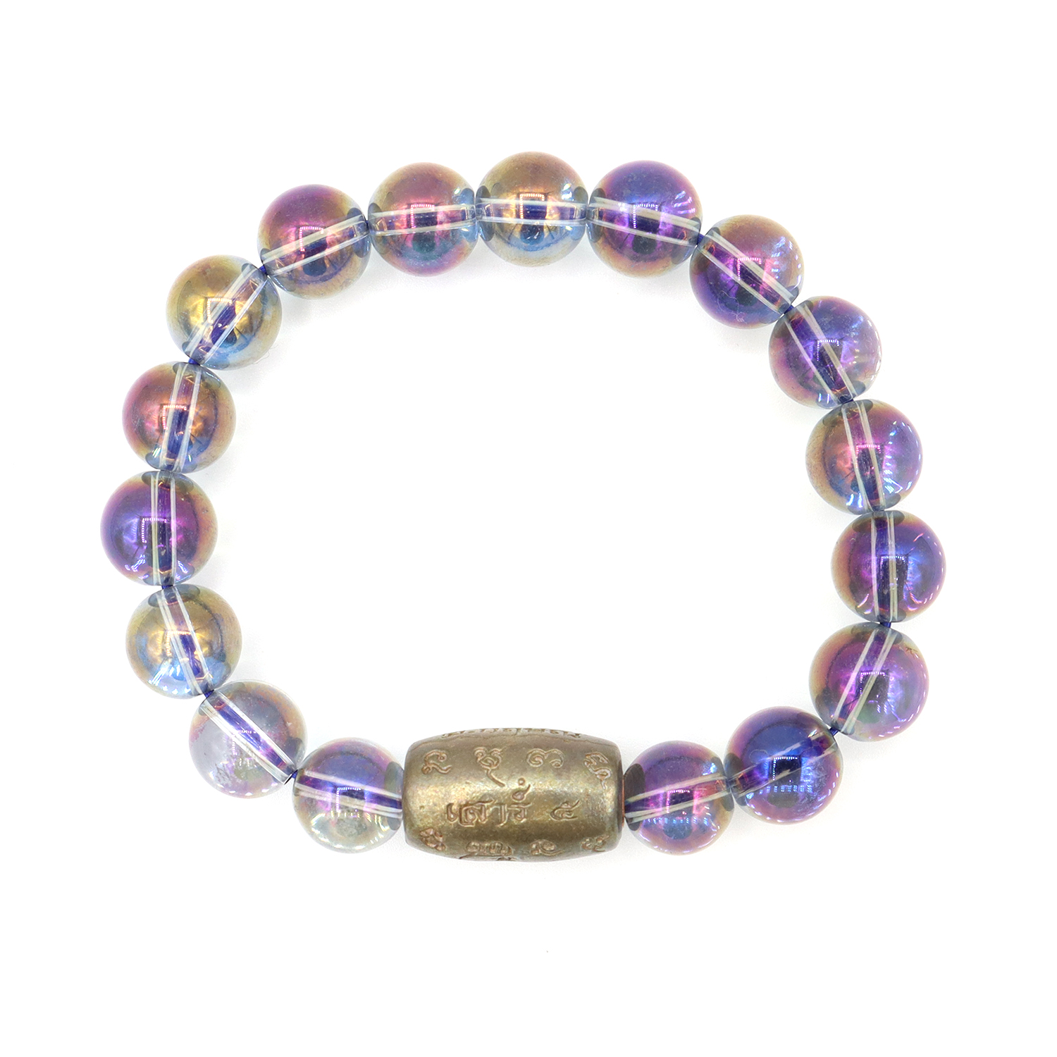 กำไล หินเรนโบว์ควอตซ์-ม่วงกลม Rainbow Quartz-Purple round