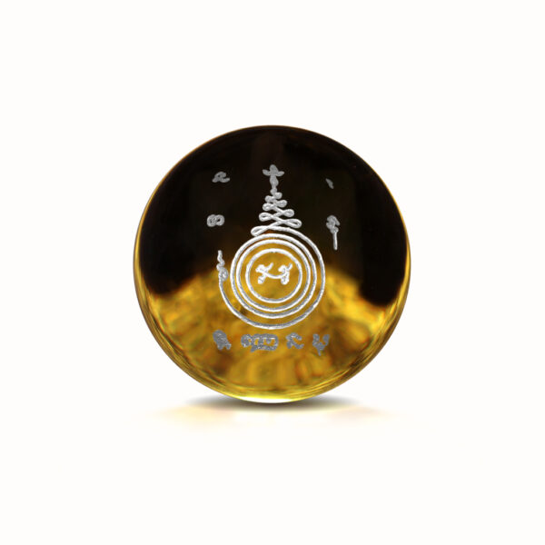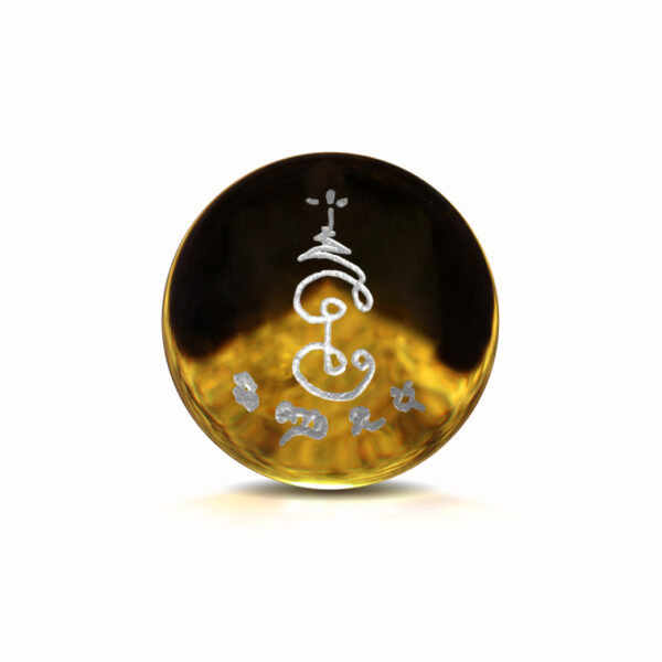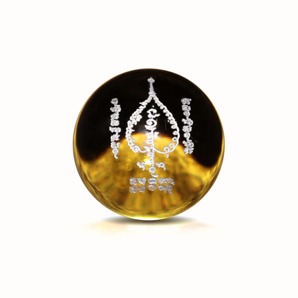 สีเหลือง หมายถึง ความนุ่มนวล แสดงถึงโชคลาภ ความรุ่งเรือง เสมือนความสว่าง สุกใสของทองคำ ยิ่งสีเหลืองที่สุกใสมาก ก็ยิ่งมีกระแสแห่งโชคลาภ ทรัพย์สินเงินทองมาก เป็นสีแห่งความสง่าราศรี ซึ่งจะได้รับความช่วยเหลืออนุเคราะห์ ทำให้หน้าที่กิจการ เจริญก้าวหน้าราบรื่น ผู้ที่ครอบครองลูกแก้วสารพัดสีเหลืองนั้น ถ้าชื่นชอบการปฏิบัติธรรมอยู่เป็นนิจ และชอบช่วยเหลือผู้อื่น เมื่อเรามีเมตตาต่อเขา เขาย่อมเมตตาต่อเรา ดังนั้นลูกแก้วสารพัดสีเหลือง จึงเหมาะแก่ผู้ที่ต้องการความสำเร็จในงานอย่างราบรื่น ไม่มีอุปสรรคอันใด เงินทองไม่ขาดมือ เพราะมีคนช่วยเหลือเจือจุน ให้สมดังปรารถนา